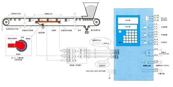 上述兩個(gè)被測(cè)量的物理量(重量和速度)被同時(shí)傳到稱(chēng)重積算儀中, 電子皮帶秤重量和速度兩個(gè)物理量在稱(chēng)重積算儀中被立即(約0.0001秒)計(jì)算成為法定重量單位(公斤 -kg,噸 -t,磅 -lb),并按用戶的設(shè)定顯示出瞬時(shí)流量和累計(jì)量。同時(shí)送出各遠(yuǎn)傳信號(hào)。